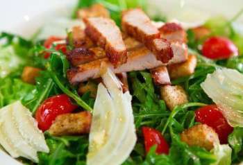 سلطة الدجاج، بالجرجير والخبز المحمص