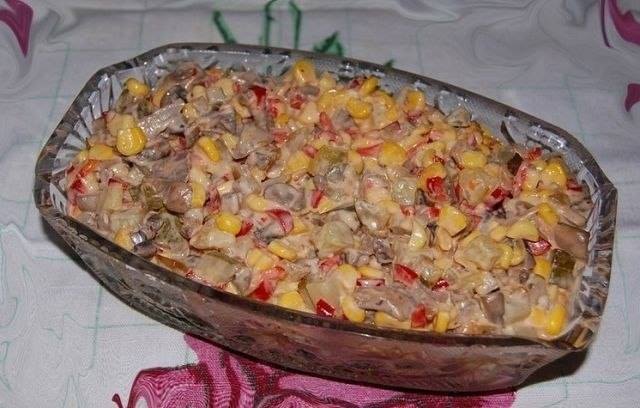 - قطعي الفلفل والمخللات إلى مكعبات صغيرة، ثم اضيفيهم مع الذرة الي الفطر والبصل.