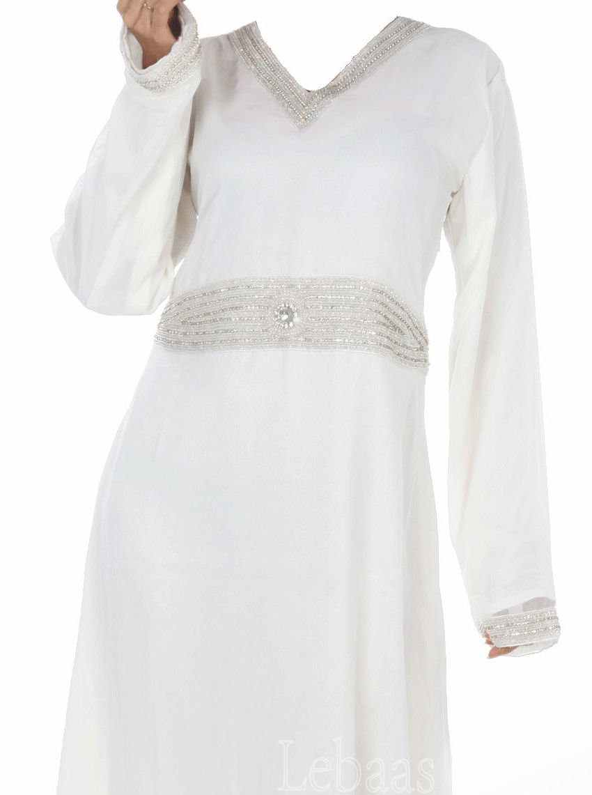تمنح المرأة اناقة عملية بفخامتها ..اختاري الابيض لعباءة العيد